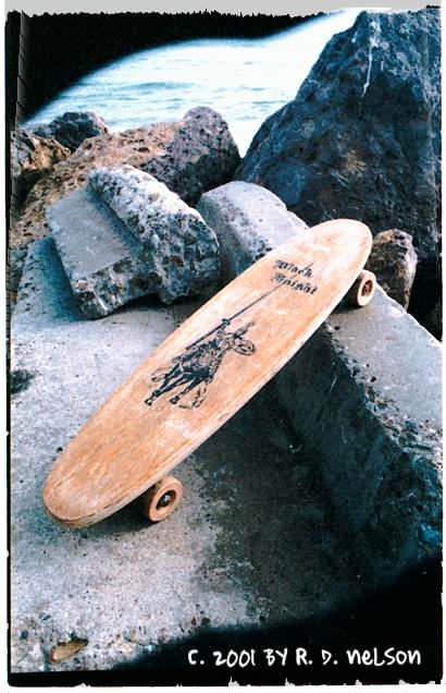 This Black Knight skateboard rode off into the sunset in 2001. It was purchaced for the collection of a life long skater, as a replacment for the board he rode as a child.